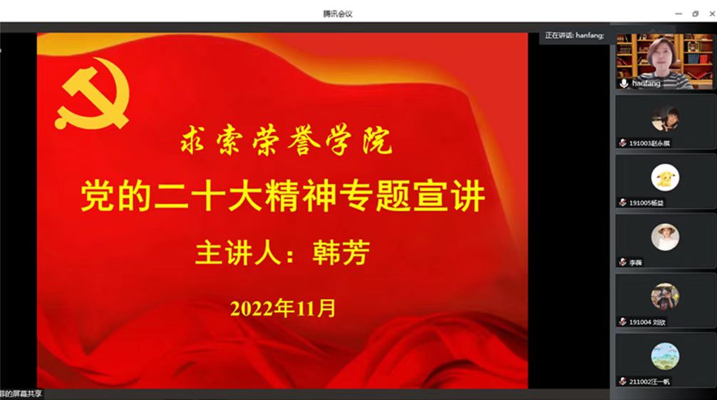 为深入学习贯彻党的二十大精神,11月19日,海洋之神线路检测入口党总支开展党的二十大精神宣讲活动,学院党总支书记韩芳主持并宣讲。学院全体教职工、学生党员、发展对象、入党积极分子及入党申请人共130余人参加。
